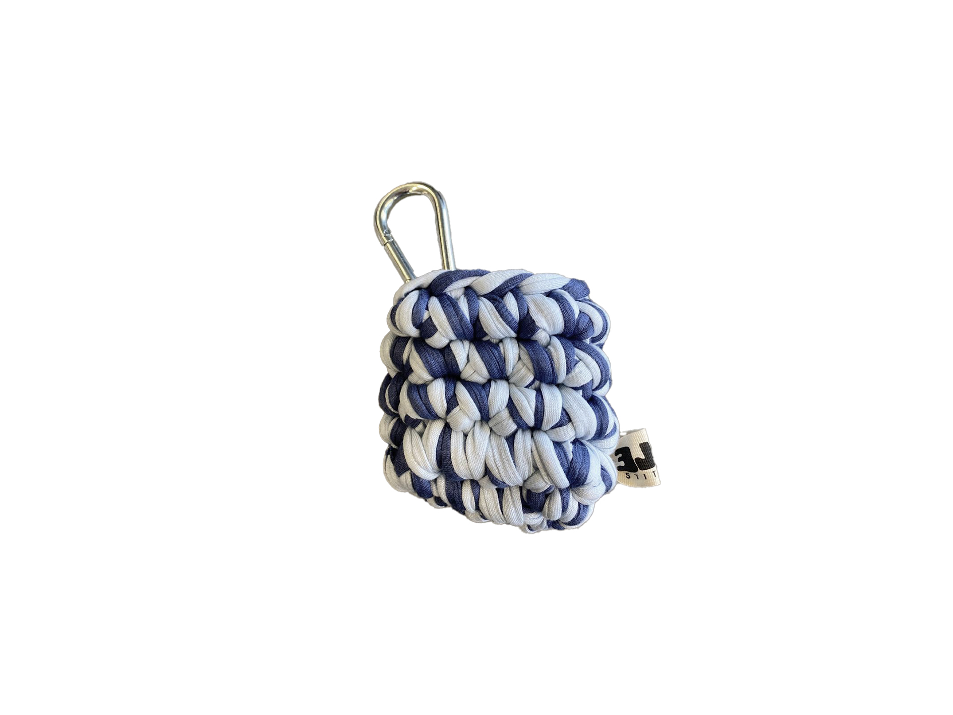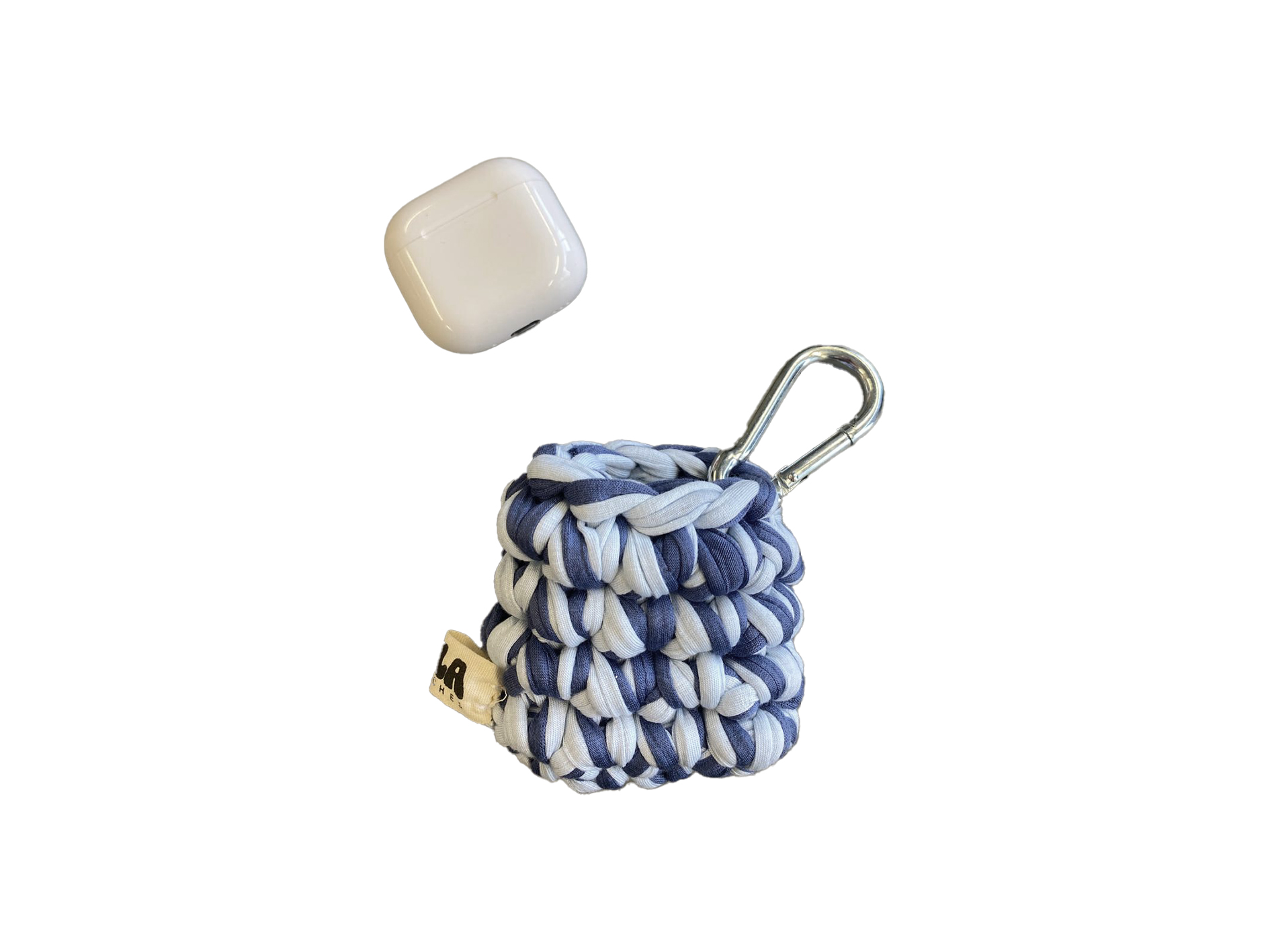 Handgehäkelte Airpod Hülle aus recyceltem T-Shirt-Garn (100 % Baumwolle) mit Karabiner, elastisch und als einzigartiges Unikat gefertigt.